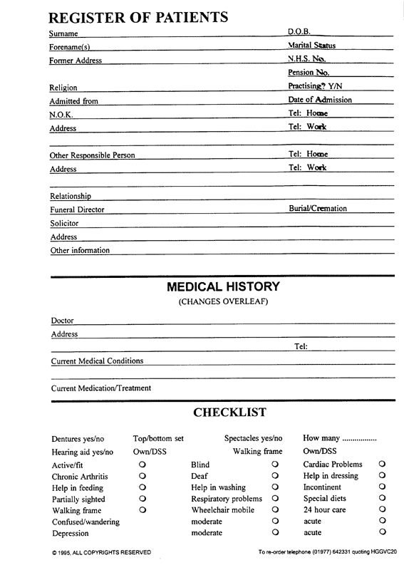 We are proud to offer a large range of Administration Forms for many areas covered by the Nursing / Care industry. We can also produce any bespoke forms to fulfill your needs and keep these on file for quick re-order. (For custom forms there is a one-off artwork charge of £25 and a minimum order of 5 packs of 100.)