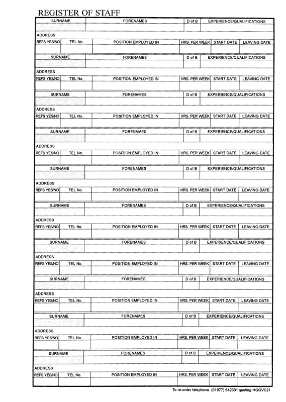 Register of Staff